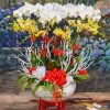 - Chậu Hoa Lan Hồ Điệp 15 Cây – HD041 Gồm: 07 cây lan hồ điệp màu trắng & 08 cây lan hồ điệp màu vàng, 1 chậu sứ cao cấp và các phụ kiện trang trí.