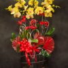 - Chậu Hoa Lan Hồ Điệp 7 Cây – HD058 Gồm: 7 cây lan hồ điệp màu vàng, 1 chậu sứ cao cấp và các phụ kiện trang trí.