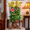 Kết Hợp 8 Cành Hoa Lan Hồ Điệp Vàng Và Sen Đá Loại Cao Cấp Ghép Vào Gỗ Lũa Nghệ Thuật;